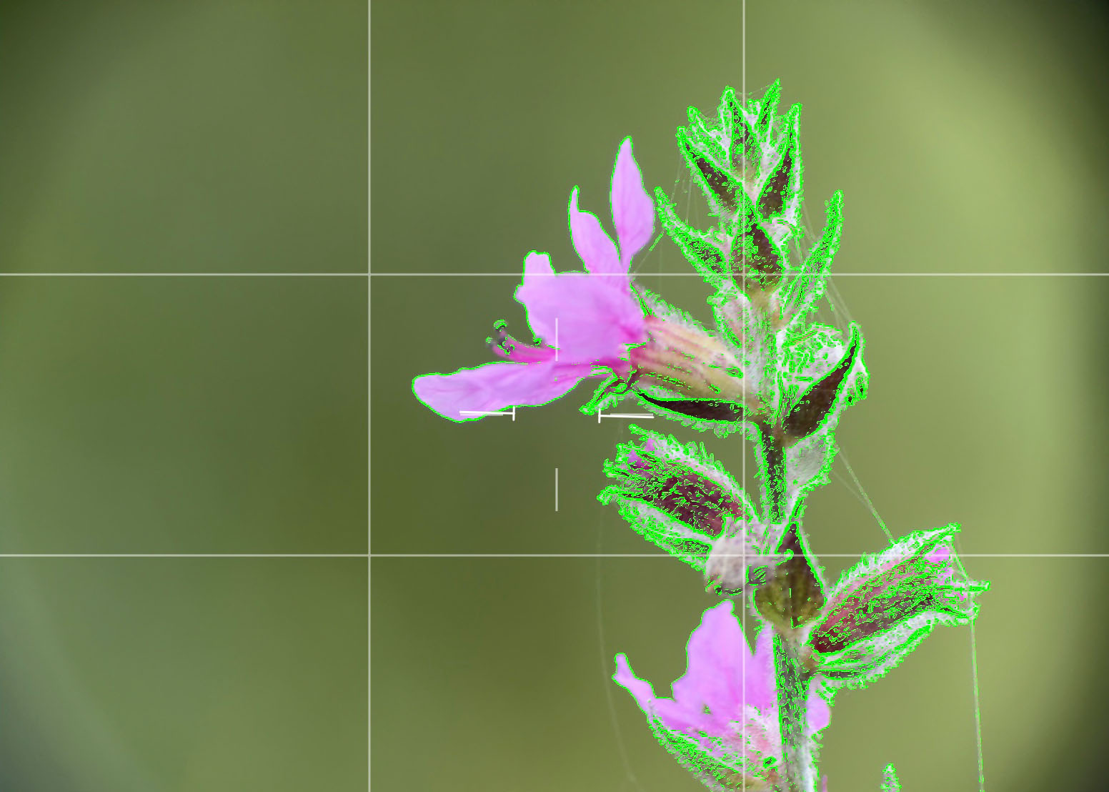 - Bij macrofotografie of (portret)foto’s met een telelens. Het scherptevlak is dan zó flinterdun dat een centimeter of zelfs een millimeter ernaast al niet meer scherp oogt. Focus peaking laat je precies zien of je scherpte op het juiste punt zit.