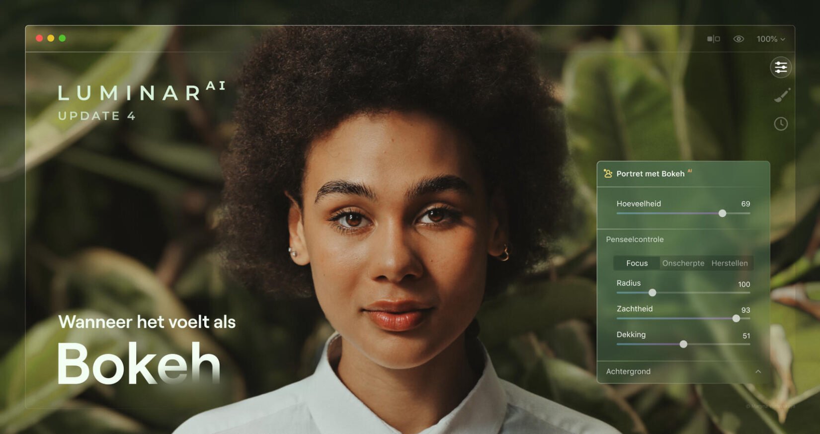 Skylum heeft in update 4 van Luminar AI een extra tool toegevoegd die ‘Portret met Bokeh AI’ heet. Met dit gereedschap kun je de achtergrond van portretfoto’s in de onscherpte laten verdwijnen, óók als je smartphone geen portretfunctie heeft. Onscherpte – of nou ja: een gedeeltelijke onscherpte – kan je foto’s niet alleen de allure geven alsof ze met een dure spiegelreflexcamera zijn gemaakt; het maakt je beeld ook rustiger en zorgt ervoor dat het gezicht loskomt van de omgeving. Luminar AI herkent mensen vanaf het middel en groepen mensen. Kennelijk zijn benen nog wel een ding 😉