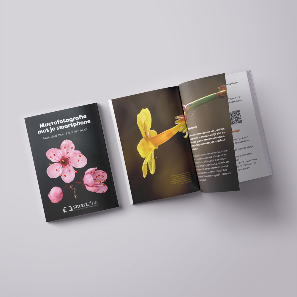 Dit pakket is bedacht als cadeau, maar minstens zo leuk om zelf te houden. Alles wat je nodig hebt zit in één doos, samen met een handzaam gidsje met tips om direct te starten. En voor wie nog een stap verder wil, ligt er ook een kortingsbon in de doos voor een Smartzine-workshop macrofotografie in de Hortus botanicus Leiden.
